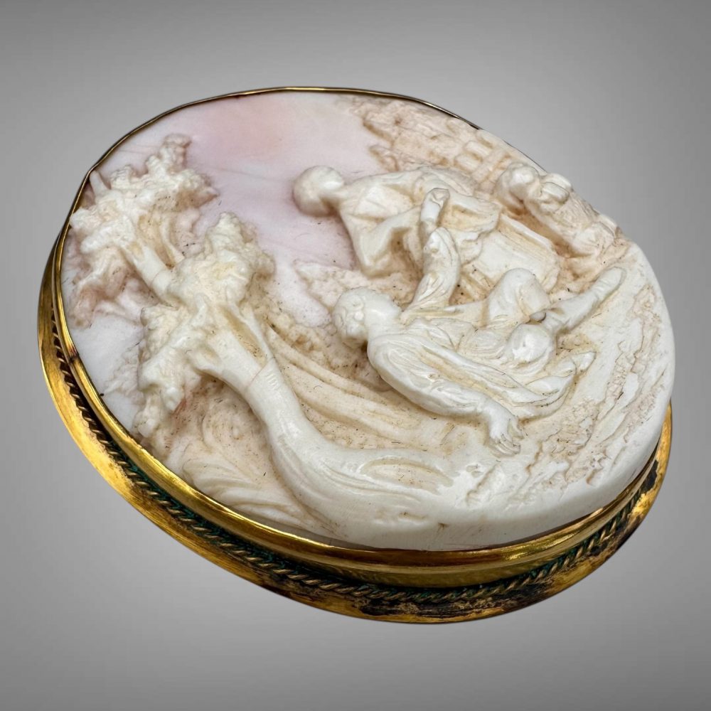Antique 18K Yellow Gold Large Shell Cameo Brooch/Pin