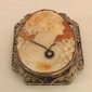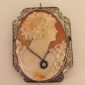 Beautiful extra large carved shell cameo of a woman and flowers set in at least 14 karat gold filigree bezel. The cameo is beautifully done and measures 2 6/8″ long by 2 2/8″ wide with the bezel that also has a loop so it can be worn as a necklace.