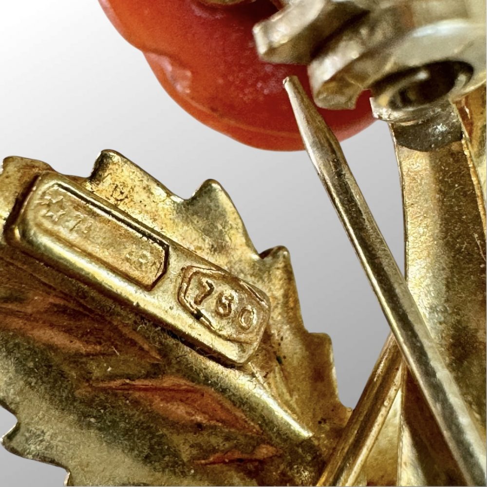 Italian Retro 18K Yellow Gold Red Coral Flower Brooch/Pin