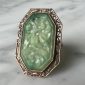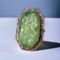 Large 14K Yellow Gold Green Jade Cabochon Filigree Ring