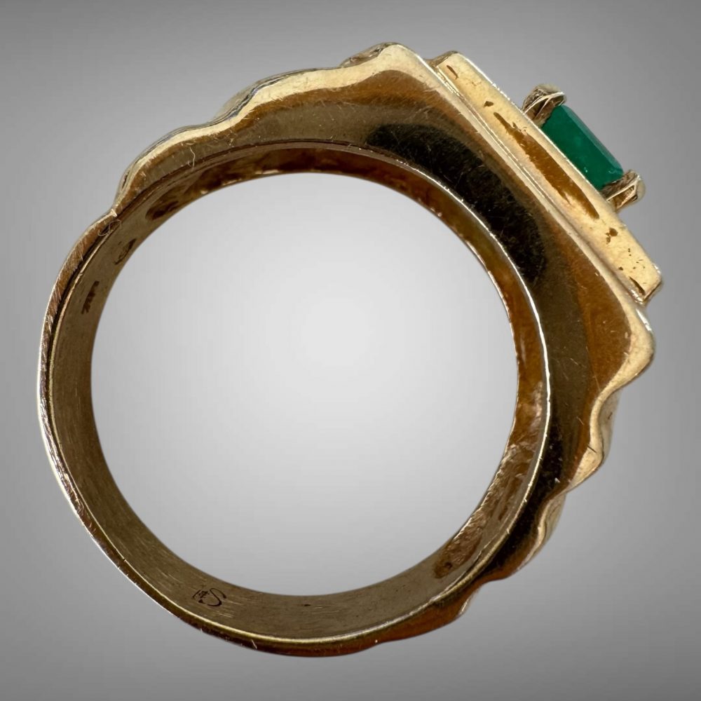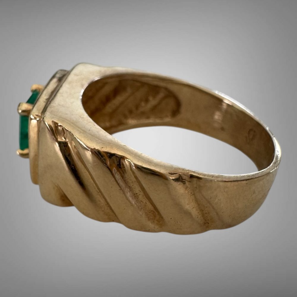 Vintage 14K Yellow Gold Emerald Diamond Men’s Ring