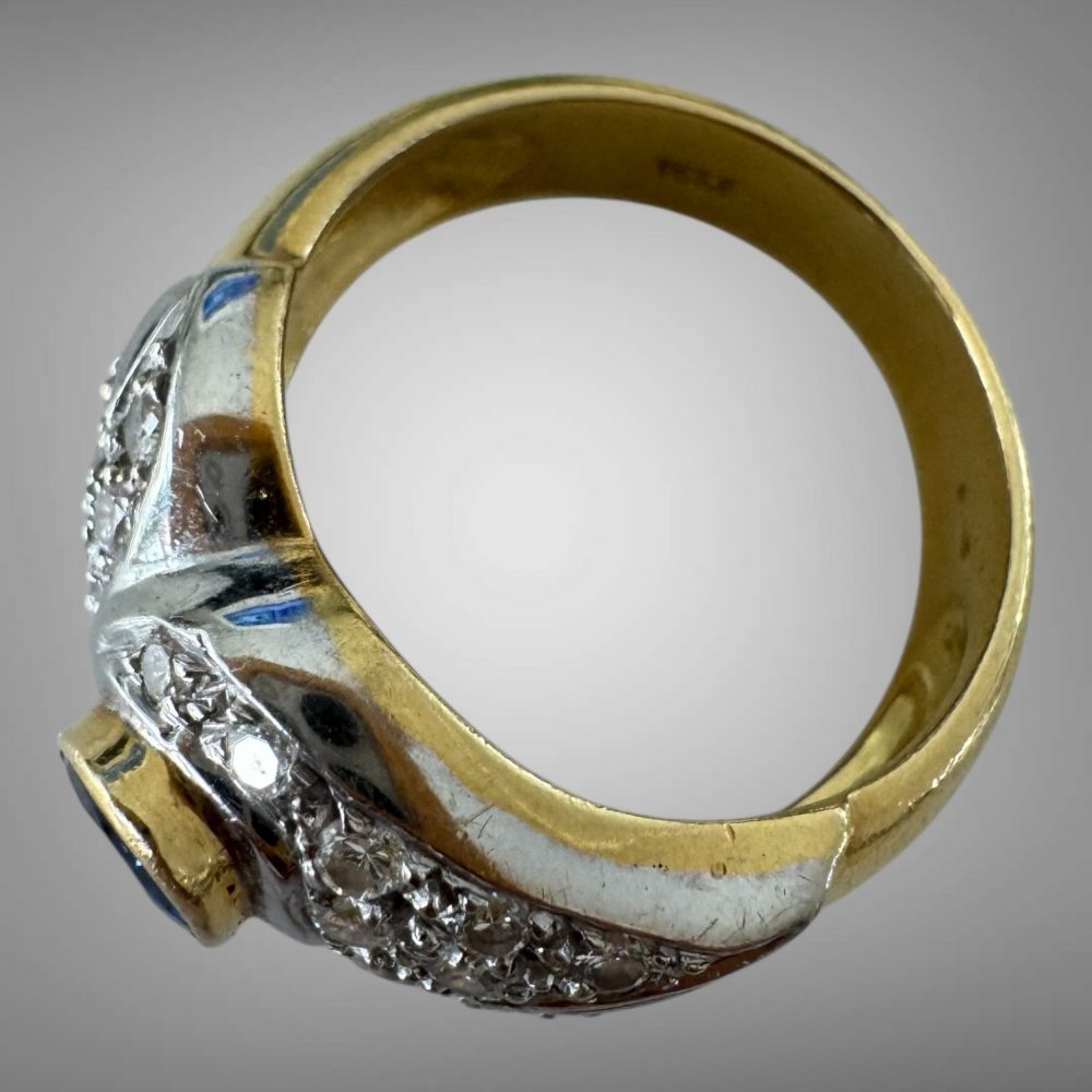Vintage 18K Yellow Gold Sapphire Diamond Wave Ring