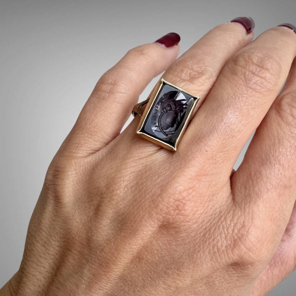 • Antique 10K Yellow Gold Carnelian Cameo Ring